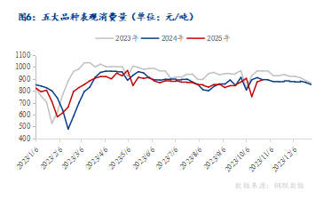 从消费量表现来看,需求端整体呈现弱复苏态势,但同比下滑2.27%表明市场仍面临结构性挑战,制造业PMI的边际改善支撑了热轧板卷和中厚板消费,而房地产新开工不足则拖累了螺纹钢和线材需求。国庆假期后第一周,多数品种消费量跌至低点,而随着季节性需求延后,短期需求有小幅改善,但受Q4新开工项目偏少,以及北方冷冬天气的到来,长期需求改善面临压力。
