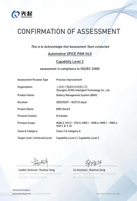 此次徐工以全部满分(F)的卓越表现,成功通过ASPICE 4.0 CL2级的19个过程认证,表明徐工在研发流程规范性、可靠性及风险管控能力等方面已达到国际行业先进水平。