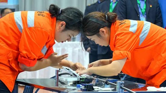 赛场上,参赛选手全神贯注,将平日里争创一流的极致追求倾注于每个操作细节,充分展示了“执着专注、精益求精、一丝不苟、追求卓越“的新时代工匠精神。裁判组秉公执裁、严格规范,确保赛事全程公平、公正、公开