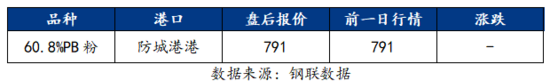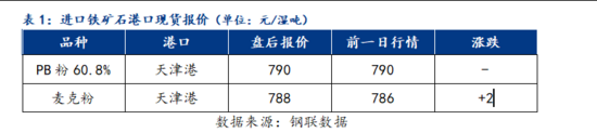 表1:进口铁矿石港口现货报价(单位:元/湿吨)