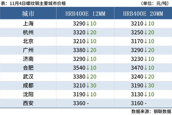 螺纹钢:11月4日,全国31个主要城市20mm三级抗震螺纹钢均价3232元/吨,较上个交易日下跌13元/吨。具体来看,早盘期螺弱势不改,上午国内现货市场价格整体弱稳,个别小幅趋弱。成交方面,上午市场成交整体一般,下游按需采购,盘中期螺进一步下行,现货成交愈发清淡,部分市场商家为促成交,实际交易价格暗降幅度加大,低位成交未有好转,全天成交不及上一交易日。短期来看,随着利好消息逐渐兑现,宏观基本面维稳,天气转凉需求或逐步萎缩,市场情绪整体偏弱,预计5日国内建筑钢材价格或延续震荡趋弱运行。