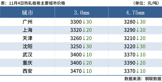 11月4日,国内钢材市场价格延续跌势,唐山迁安松汀钢铁普方坯资源下调10,执行2950含税出厂。黑色期货全线下跌,商家降价促销,但成交量继续萎缩。