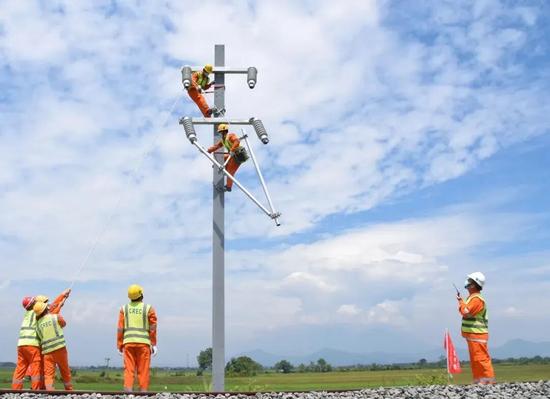 高铁接触线对平顺性要求极高,以时速350公里高速铁路为例,每一米接触线的平直度精度误差不能超过0.1毫米。恒张力放线车,是架设高铁接触网导线的最佳助手,被誉为接触线架设机器人。中国中铁自主研制的恒张力放线车打破了国外垄断,拥有完全自主知识产权,它所架设的接触线,每一米平直度精度误差整体控制在0.05毫米以内,同时,整体结构更加紧凑,转场运输成本降低了70%,整车功能也显著优于传统的放线车。目前,该车已在雅万高铁、拉林铁路等多个项目有效运用,高效助力中国电气化铁路建设。