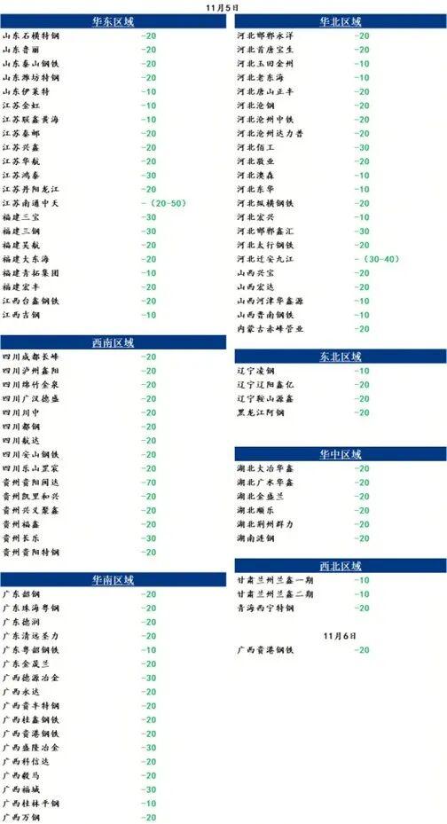 1、山西部分钢厂已经提出停产检修计划。一家钢厂高炉计划本周末停产检修,日影响产量或在0.7万吨;暂定在12月份计划检修的钢厂有3家,日影响产量或在1.35万吨。