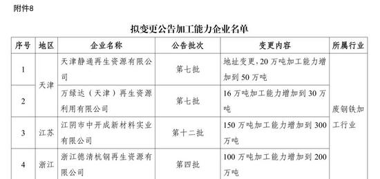 9. 拟撤销《废钢铁加工行业准入条件》公告企业名单