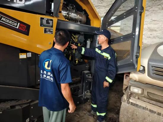 但是面对这样的紧急情况,他也丝毫不慌,经过一番紧张而有序的维修,故障终于排除。当发动机重新发出正常的启动声,施工队负责人紧紧握着他的手:“真是太谢谢你了师傅!我本来以为你们怎么也得过几天来,真是没想到你们还能这么及时!”