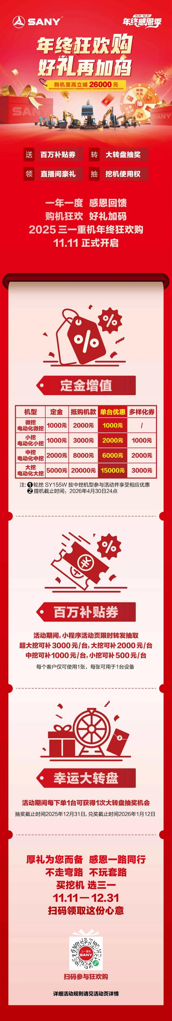 铁甲工程机械网> 工程机械资讯> 行业 > 三一重机年终狂欢购,好礼再加码!!!