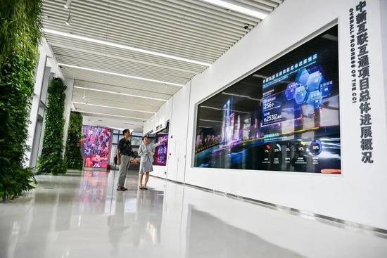 人们在位于重庆来福士的中新互联互通项目展厅内参观。新华社记者 王全超 摄