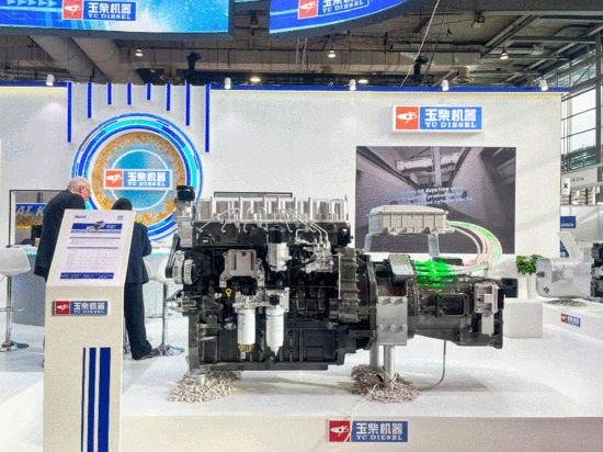 在新能源动力领域,玉柴重点展示了YCF11-15kW与YCK16-400kW两款增程混合动力系统,作业效率提升15%以上,覆盖全功率段应用场景,有效响应节能减排需求;采用玉柴专利混动技术,使发动机长期保持最佳工况,显著提升能效并降低油耗与排放。