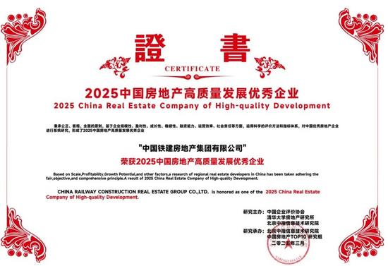 中铁地产荣获“2025中国房地产高质量发展优秀企业”