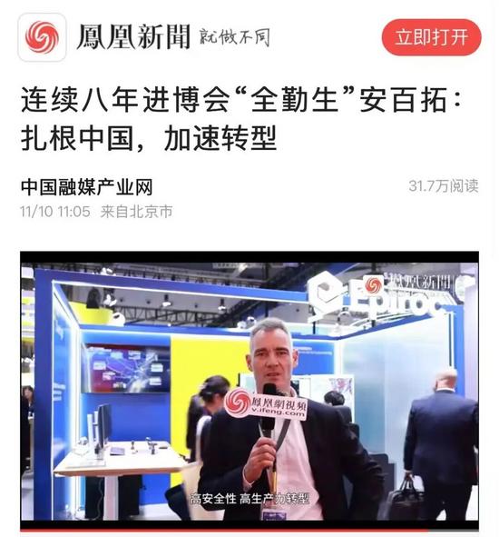 本届进博会,安百拓受到了包括央视新闻、中国国际电视台、中国日报、凤凰网、江苏经济网、江苏商务公众号、中国黄金报等主流媒体的高度关注与广泛报道。从“全勤生”的坚守,到“中国创新解决方案”的发布,再到盖亚品牌的本土化突破,媒体用镜头与文字记录了安百拓在中国的每一步成长。通过媒体的传播,安百拓的创新理念与合作成果得以更广泛地触达公众与行业,为品牌发展注入持续影响力。