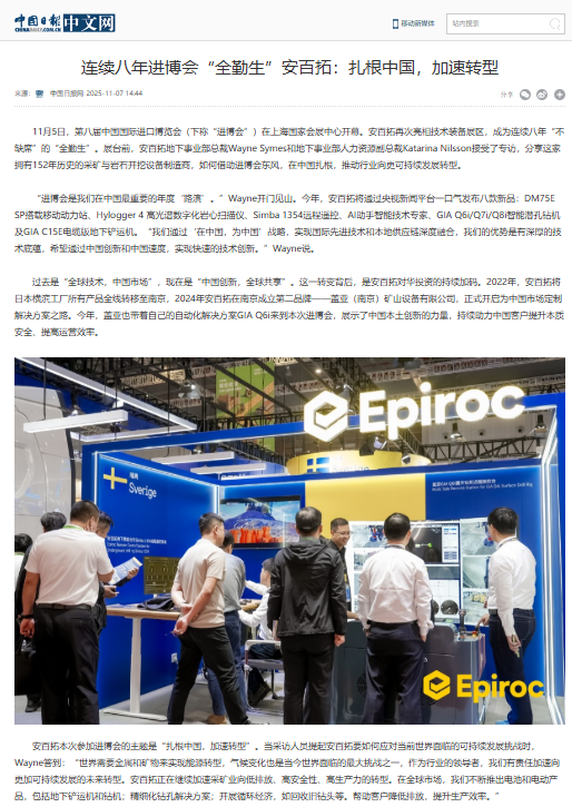 中国新发展,世界新机遇。随着本届进博会的圆满收官,安百拓在中国的发展也将踏上新的征程。感恩政府鼎力支持、客户一路同行、媒体持续关注,未来,安百拓将持续深耕中国,携手更多伙伴共绘绿色、智能、可持续的矿业蓝图,让“扎根中国、加速转型”从承诺变成更加壮丽的实景,与中国市场同频共振,再启新程!