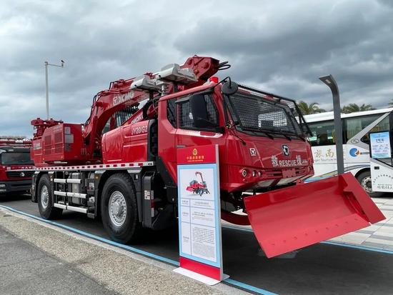 在海南三亚,2025“一带一路”自然灾害防治和应急管理部长会议如期举行。多台徐工应急救援装备整齐列队,与会代表现场观摩演示。行业首款子母式正负压排烟车PY10G2、“百变王者”多功能应急救援消防车JY20G2以及“治水先锋”远程供排水抢险车GP40X,展现多场景救援解决方案。