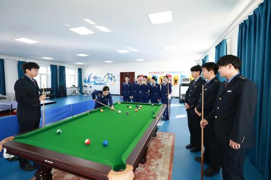 为进一步丰富职工业余生活,服务中心还精心规划了休闲吧、影音室。高品质音响设备与舒适按摩器材相结合,帮助职工舒缓疲劳、释放压力。新建的职工活动室配备了台球桌、乒乓球台、跑步机等多种健身器材,丰富待乘期间的休闲活动。