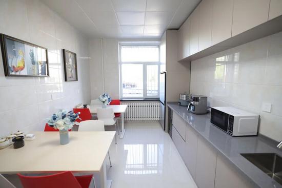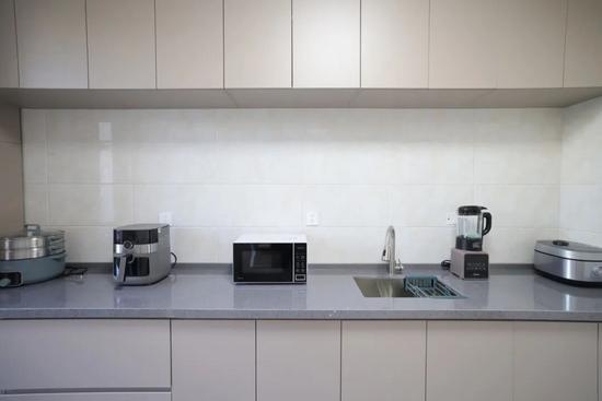 由于通勤职工、待乘职工出退乘时间不固定,“就餐难”一直是个亟待解决的问题。职工服务中心创新打造了自助式家庭厨房,配备冰箱、电磁炉、空气炸锅、电饭煲等常用家电,大家可随时制作热乎可口的饭菜。“00后”职工张祺感慨道:“再也不用为吃饭发愁了,厨房设备很全,自己动手做的饭菜特别香!”