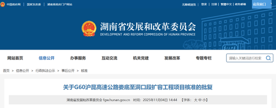 近日,湖南省发展和改革委员会发布了《关于G60沪昆高速公路娄底至洞口段扩容工程项目核准的批复》。