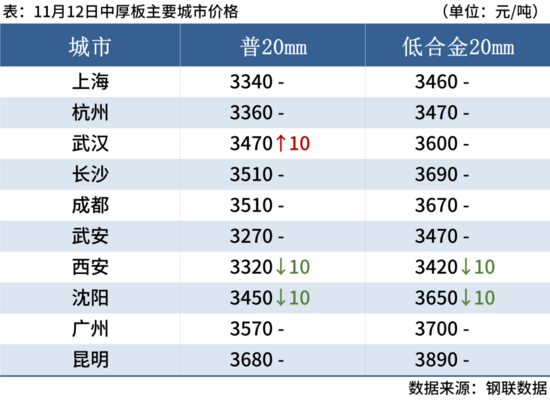 中厚板:11月12日,全国24个主要城市20mm普板均价3434元/吨,较上一交易日元/吨。近期有投放的中厚板钢厂投放量持续打折,一单一议锁单资源到货量偏少,市场总体到货量降低,库存方面压力并不大,后续部分贸易商或将采取锁单订货补库存,受近期盘面等多因素影响,市场商家心态依旧谨慎,整体报价持稳为主,预计13日中厚板价格窄幅震荡。