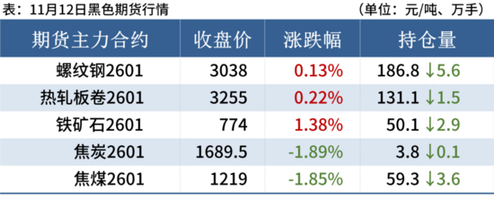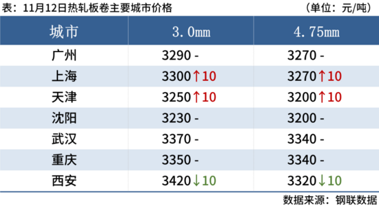 热轧板卷:11月12日,全国24个主要城市4.75mm热轧板卷均价3309元/吨,较上个交易日涨1元/吨。需求端整体疲软,东北部分地区因天气转冷已逐步停工。全国社会库存去库缓慢,库存压力向流通环节转移,叠加原料端价格走弱导致成本支撑弱化,市场心态谨慎预计13日市场延续弱势震荡,局部区域或小幅下探。