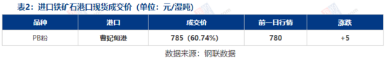 据了解,目前鲅鱼圈港与山东港口的中品粉港差在25。本周港口成交多以PB粉为主,目前港口印粉资源较少,价格较高,成交较少。