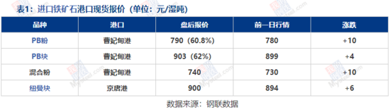 有市场参与者称:目前选厂精粉库存多为前期高成本原料,钢厂对精粉涨价存有心理预期,可接受涨价幅度较小,卖方出货意愿一般,预计今日主导钢企采购价格涨10左右。