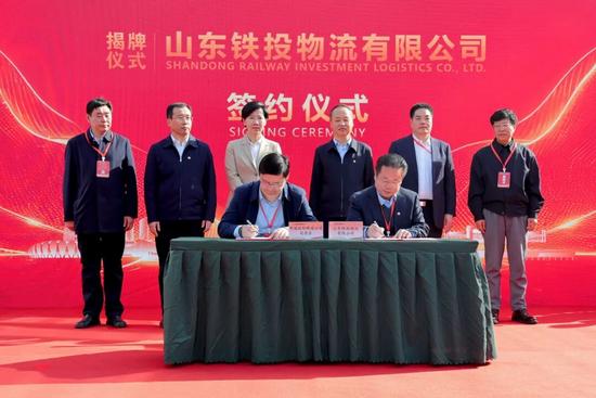 揭牌仪式后,山东铁投物流有限公司分别与中国国际跨国公司促进会、高密市人民政府、土耳其天马矿业有限公司签署了战略合作框架协议,各方将在国际物流、产业协同、资源整合等领域开展合作,共同构建开放共赢的物流生态圈。