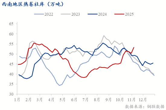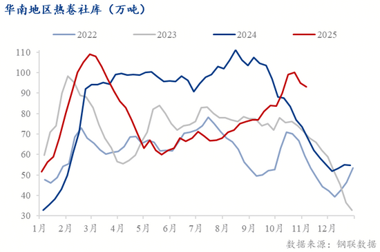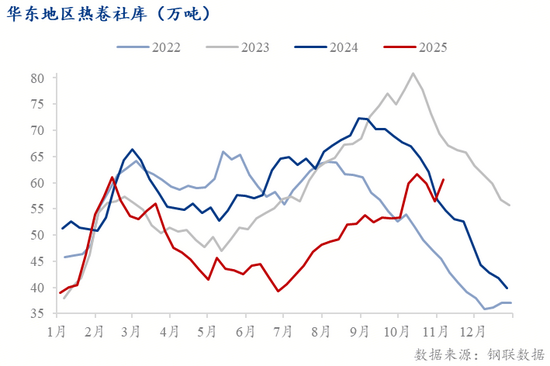 区域结构方面,热卷库存压力区域分化显著,整体呈现“南累北缓”特征: