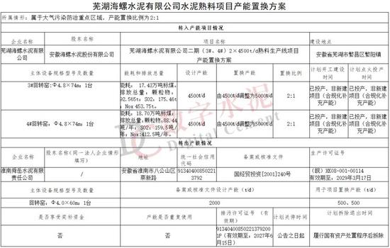 11月13日,芜湖市工业和信息化局发布《关于芜湖海螺水泥有限公司水泥熟料生产线产能置换方案的公示》称,根据《水泥玻璃行业产能置换实施办法(2024年本)》等文件要求,芜湖海螺水泥有限公司3#、4#2×4500t/d水泥熟料生产线通过补产能方式将产能分别增加到5000t/d、5000t/d,置换产能来自淮南舜岳水泥有限责任公司,置换比例为2:1。现将产能调整置换方案予以公示。