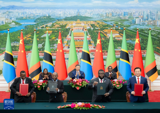 2024年9月4日,国家主席习近平在北京人民大会堂同来华出席中非合作论坛北京峰会的坦桑尼亚总统哈桑、赞比亚总统希奇莱马共同见证签署《坦赞铁路激活项目谅解备忘录》。中国铁建党委书记、董事长戴和根参加备忘录签署仪式。
