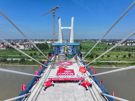 沪渝蓉高铁通泰扬特大桥跨引江河斜拉桥顺利合龙