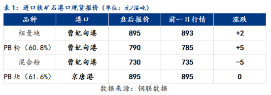 表1:进口铁矿石港口现货报价(单位:元/湿吨)