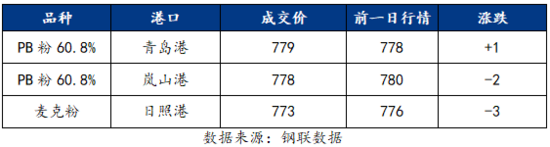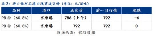 表2:进口铁矿石港口现货成交价(单位:元/湿吨)
