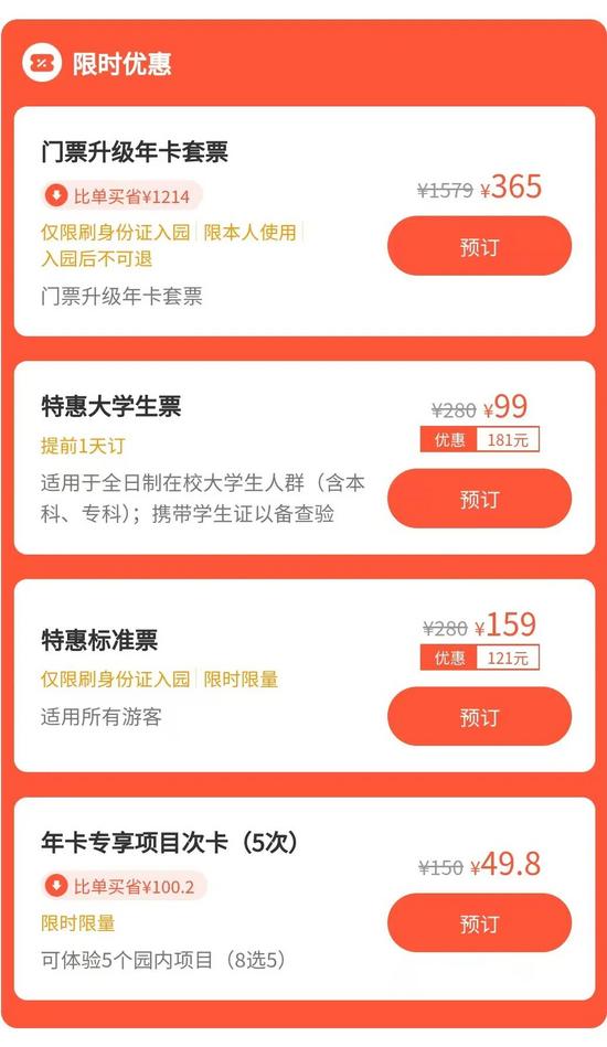 ·门票升级年卡套票:原价1579元,福利价365元,比单买省1214元。
