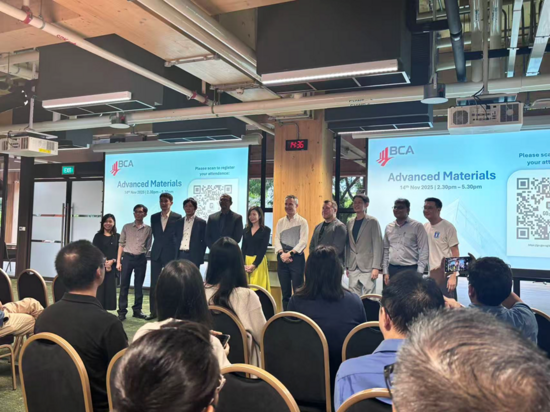 1114日下午,CCPA代表团受邀参加新加坡建筑建设局(BCA)在BCA Academy举办先进材料展及技术交流会。本次活动展示了Island Concrete、日本鹿岛建设等十几家公司的最新产品和技术,同时,行业领先企业还做了专题技术分享。凯德地产分享可持续建筑设计,Island Concrete与Taiheyo Cement分享新型混凝土解决方案,Meta公司分享用于优化混凝土配比的人工智能工具,Fyfe、Zingametall和Nippon Paint公司分享高性能建筑加固与修复材料,Upcyclea公司分享通过数字化技术将废弃材料转化为资源等。