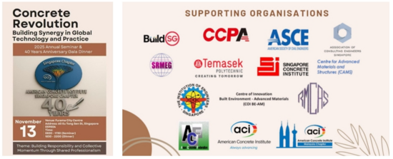 1113日,美国混凝土学会新加坡分会(简称“ACI-SC”)成立40周年研讨会在新加坡富丽城市中心酒店顺利召开。中国混凝土与水泥制品协会(CCPA)受邀作为本次会议重要支持单位,不仅组织国内企业代表及行业专家出席会议、深化国际交流,还对ACI-SC发起的“2025年混凝土纪念碑纪念品大赛”在中国的组织工作给予了大力支持。