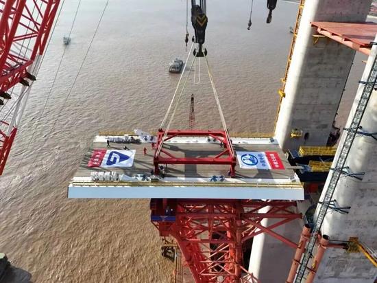 精准架设到8号主墩墩顶