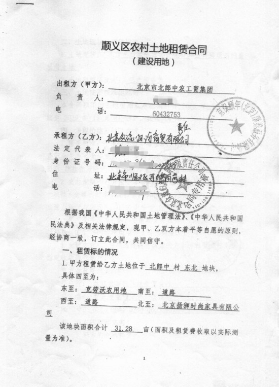 北京市北郎中农工贸集团土地出租合同。