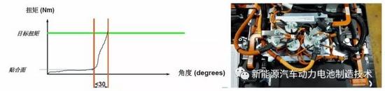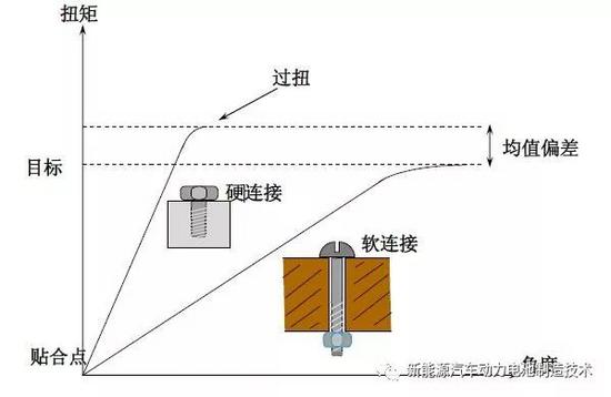 当拧紧角度<30°时,称之为硬连接。在PACK装配工艺中,绝大部分都是硬链接。比如模组与托盘的连接,高压线束与继电器的连接。