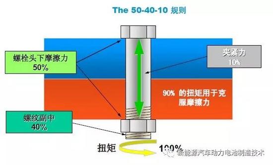 真正转化为加紧力的扭矩其实只有10%,90%的扭矩用于克服摩擦力。下图就是传说中的:50-40-10原则。