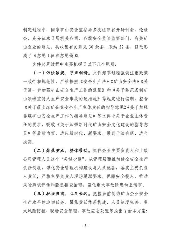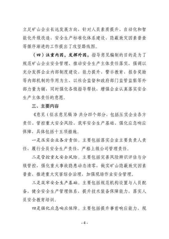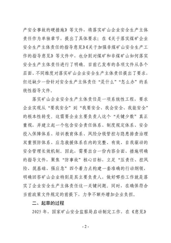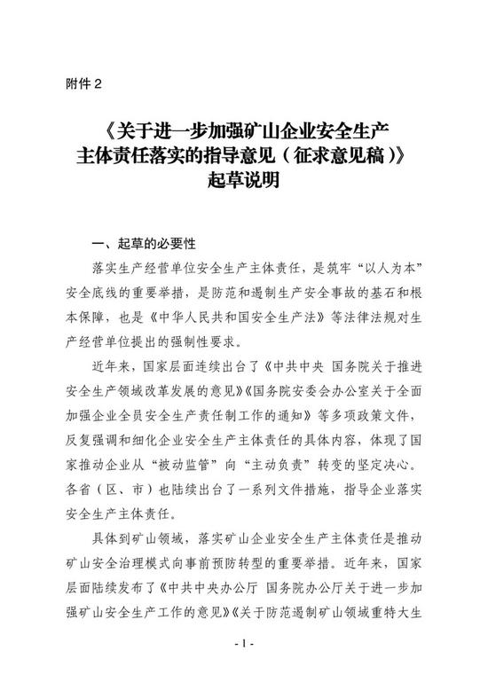 2.《关于进一步加强矿山企业安全生产主体责任落实的指导意见(征求意见稿)》起草说明