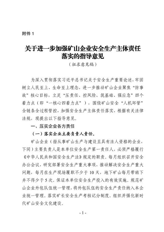 1.关于进一步加强矿山企业安全生产主体责任落实的指导意见(征求意见稿)