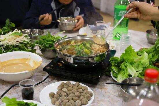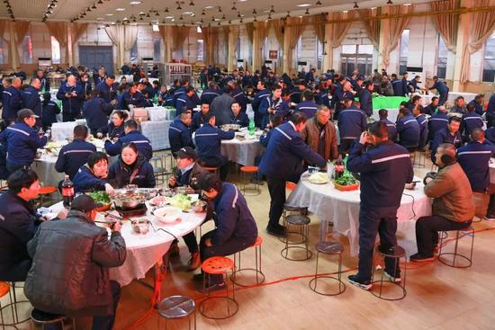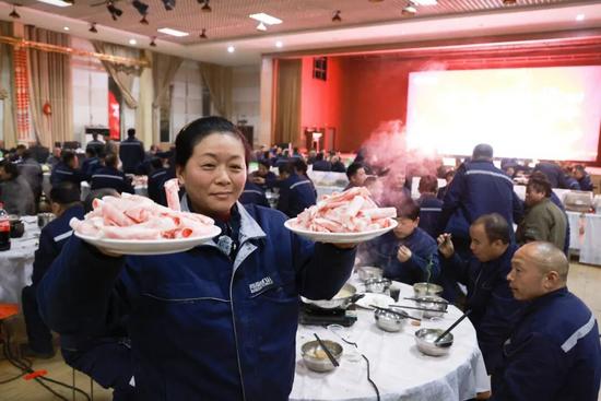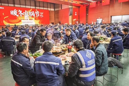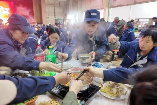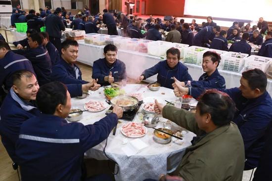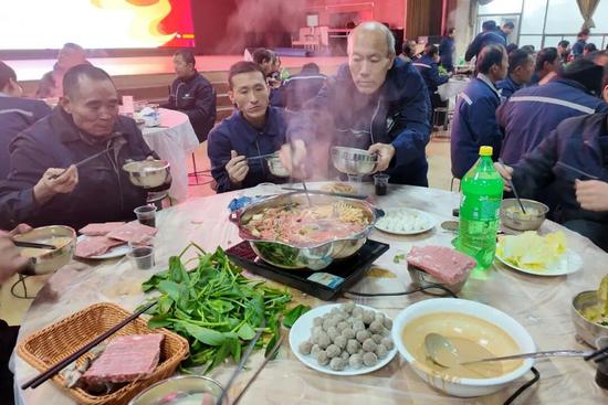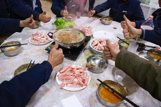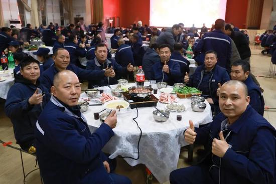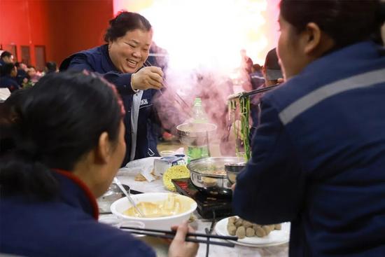 员工们吃着火锅加油干,冲刺全年目标。