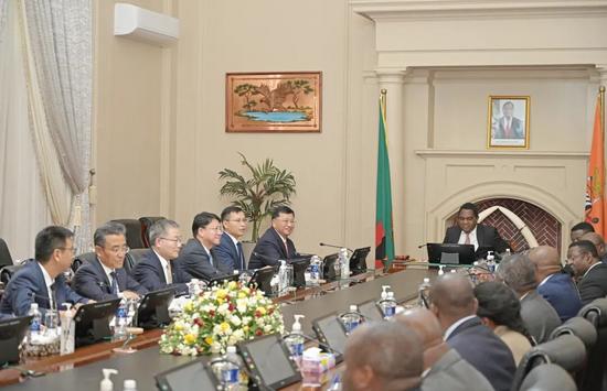 当地时间11月18日,中国铁建董事长戴和根在卢萨卡与赞比亚总统希奇莱马举行会谈,双方围绕坦赞铁路激活项目推进和深化基础设施建设等领域合作进行了友好交流。