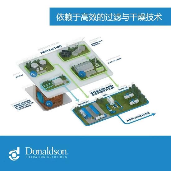 从绿色制氢过程中杂质的去除,到将原始沼气提纯为符合电网标准的生物甲烷,再到保障二氧化碳的安全处理与封存——唐纳森高性能纯化技术让这一切成为可能。