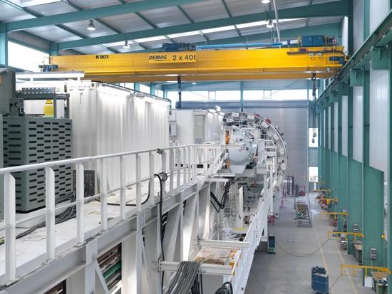 德马格起重机的主梁确保了高度的刚性,优异的运行性能和非常低的损耗。起重机的主梁设计尤为适合该用户厂房的构造,此外起重机的结构紧凑,工作盲区小,提升高度更高,能够充分利用厂房的空间,节约用户厂房的面积和成本。起重机主梁设计为双梁,具有非常好的自重和载重比。其形状设计合理,由于吊钩可以上升到两根主梁之间,故有效起升高度得到大幅度提高,尤为适用于在有限空间内,搬运盾构机的大型组件。这些德马格双梁起重机各机构均采用变频控制,可无极调速,有利于减小负载摆动,降低起重机运行过程中对各机构的冲击,以精准定位盾构机装配过程中的各大型组件。同时,起升速度很高,行走速度快,能快速完成小型部件的搬运,提高盾构机生产的效率。