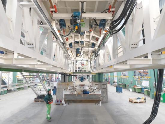 盾构机全名为盾构隧道掘进机,是一种集开挖、支护、出渣、拼装隧道管片等功能于一体的特大型工程装备。它的工作原理堪称精妙:前端巨大的刀盘旋转,切削岩石和土壤,与此同时,液压系统推动机身向前,身后的机械手迅速将预制的混凝土管片拼装成环,形成坚固的隧道衬砌。整个过程如同“穿山甲”在地下一边挖掘,一边为自己“搭建”永久的保护壳。盾构施工具有安全性高、掘进速度快、对地层扰动小、环保高效等优势。它让工人们从危险、繁重的体力劳动中解放出来,在“移动工厂”内安全作业,在整个移动作业过程中,盾构机需要通过内部的管片机不断输送管片等部件确保作业的完整性。地底作业的严苛环境,尤为考验管片机的可靠性和耐用性,为此,该盾构机制造商选用了德马格的环链葫芦,钢丝绳葫芦和驱动打造了经久耐用的管片机。