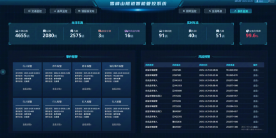 “过去出事后再响应,现在系统在风险刚出现时就开始自动处置。”项目负责人表示。一旦系统识别到火灾、车辆故障等突发事件,会立即触发预警,同步推送处置方案,一键联动隧道内通风、照明、情报板等设备,引导司乘人员安全通行,并为救援力量开辟快速通道。这一闭环模式将应急响应效率提升了50%以上。