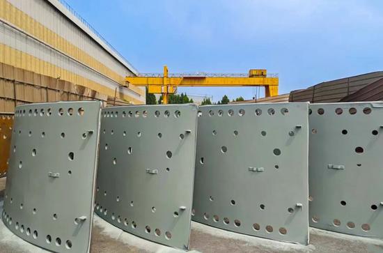 大直径薄壁筒体件因结构壁薄、直径大的特点,在焊接、热处理及机加工过程中,极易产生不均匀性变形,严重影响产品尺寸精度与结构可靠性,如何有效防止大直径薄壁筒体件变形成为行业技术难题。此次高炉项目单套炉壳重量达200吨、直径超过9米,且材料力学性能、焊接变形控制和整体圆度等方面要求极为严苛,给生产制造带来更大挑战。