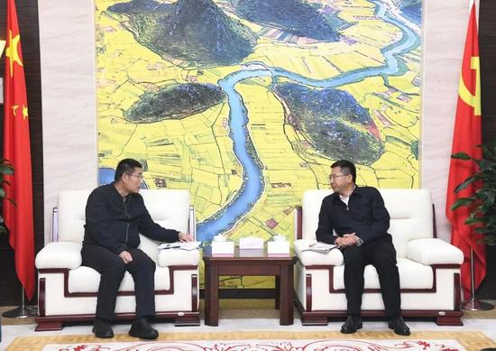 11月18日,中建铁投党委书记、董事长、总经理万大勇一行拜会文山州委书记赵国良,双方就深化合作进行交流。