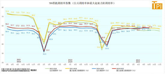 据中国工程机械工业协会施工机械化分会等统计的塔机租赁行业景气指数(TPI),2025年10月份塔机台天利用率57.0%,最大起重力矩利用率57.8%,分别较上月低0.3个百分点和0.2个百分点;10月份租赁价格指数为495.02点,较上月低2.29点,低于去年同期72.78点。