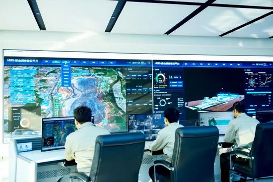 走进研山铁矿生产指挥中心,映入眼帘的LED大屏格外醒目。这张“矿山全景图”上,生产指挥、安全监控、采场管理、计量质量、物流成本等关键业务信息一目了然,可实时掌控生产的每一个环节。通过虚拟化技术、故障实时动态迁移技术,全矿数据实现分类融合,调度人员在大屏上就能掌握全局,下达指令更精准、更高效。